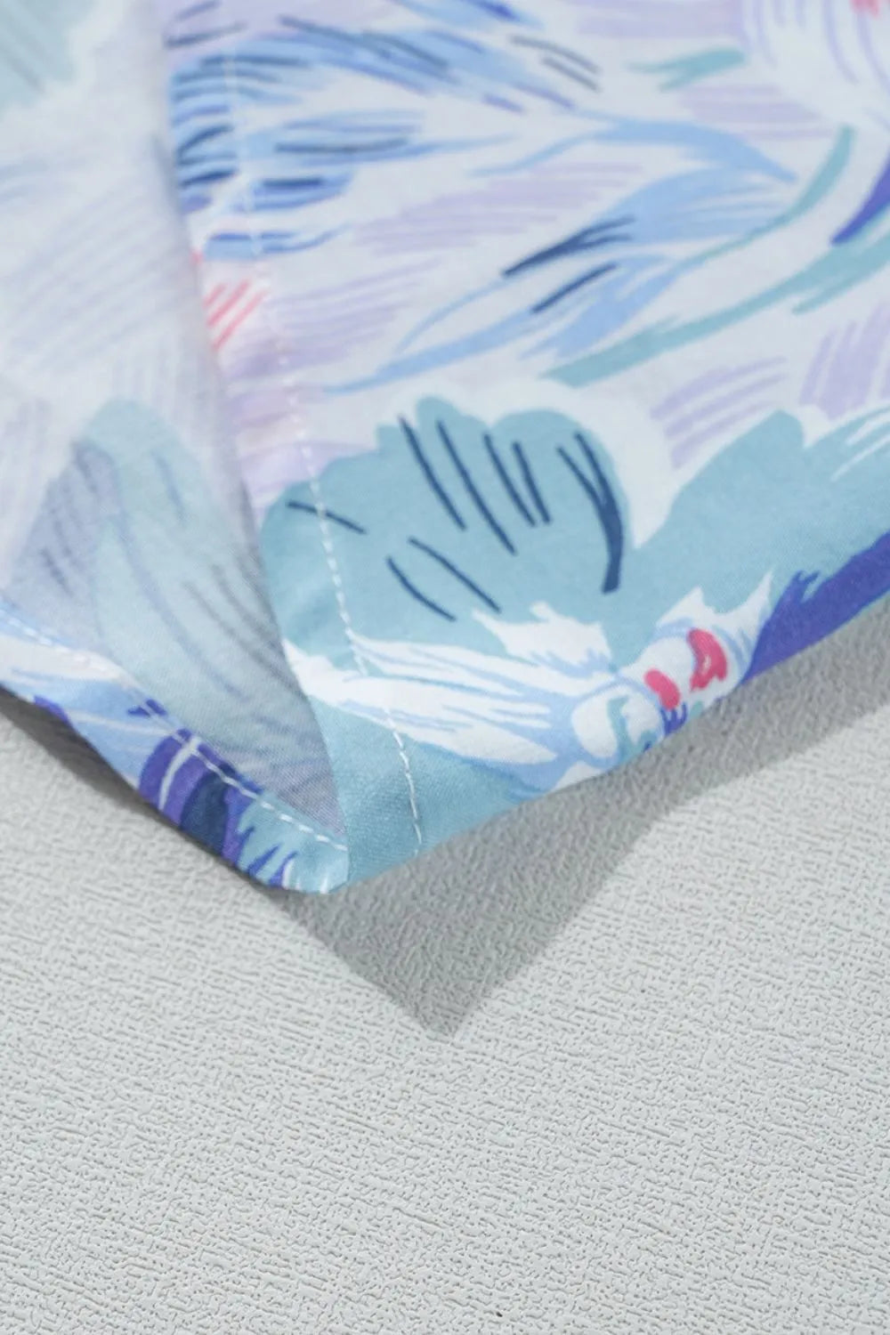 Floral Spaghetti Strap Surplice Neck Shirred Waist Mini Dress